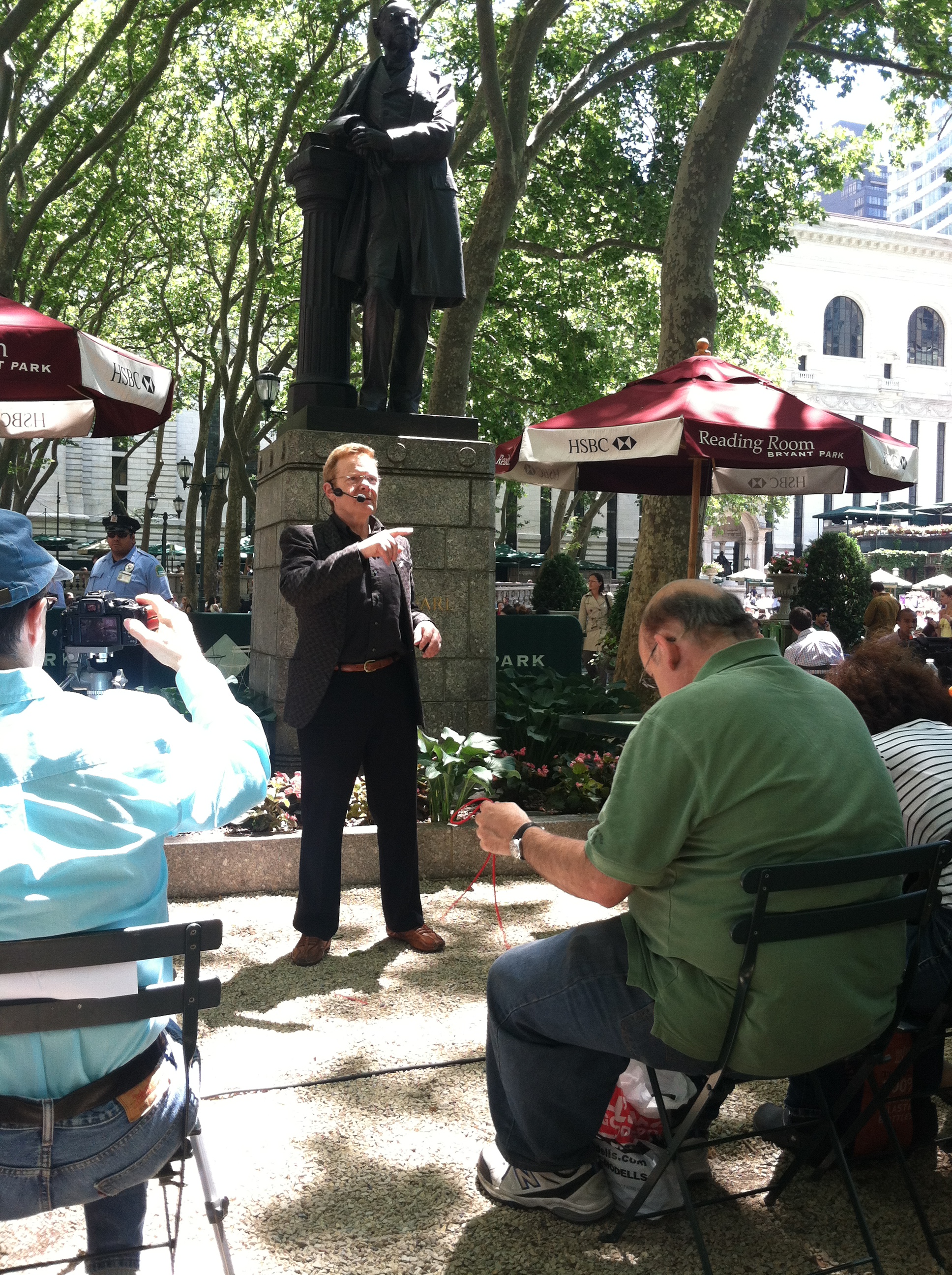 It was one of those days that stuck with me for a long time after I paid for Why Knot? and To Reach the Clouds. Once again, something that I had only seem in film and print had come to life before my eyes, much as the places in New York and America had for me during my jaunts away from my cozy suburban abode. The crowd that grew was much larger than anyone had anticipated as those walking by through the park or on their way back to the office after lunch realized who was speaking and how he had everyone’s attention who was in attendance. Most striking of all were how many people that were in the park that day were *not* aware of the speaker at all but rather, were on their phone/Blackberry or idling the time away in the midst of a presentation by one of the most engaging personalities ever to set foot in the Big Apple.