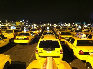 Sure enough, the line of empty cabs waiting to head out of that line can be big and slow to move, leaving the occasional crazy cabdriver to hop up on his cab and take in the scene, out of sheer boredom. It’s like any other Taxi line, with a dispatcher and a “FIFO” (first in, first out) rule but the trick is figuring out how long it will take to get out. During Rush Hours, rainy days, or busy travel periods, it can quick and worth the driver’s time. Otherwise, I can catch 3/4th of a sporting event on the radio before I have to wake up, start the engine and pull out. Who doesn’t like saving on gas? Probably the same person who wants to wait around while at work. Yup, it’s just that exciting…
